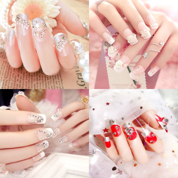 Long Fake Nails Wedding Nail Decoration Shiny Rhinestones Glitter Flower Press On False Nails Tips From Fashion Show2017 2 34 Dhgate Com