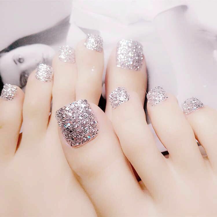 Artificial Tips Glittery Toenails Press On Flat Top Art Nails Extension For Foot Ebay