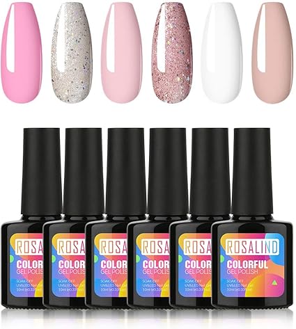Amazon Com Rosalind Gel Nail Polish Set Nude Pink Silver Glitter White 6 Colors Gel Polish Long Lasting French Manicure Nails Art Home Salon 10ml Beauty