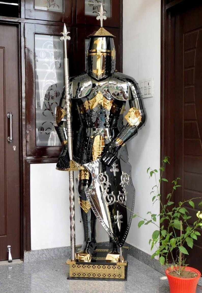New Medieval Full Suit Body Armour In Black Golden And Silver Etsy
