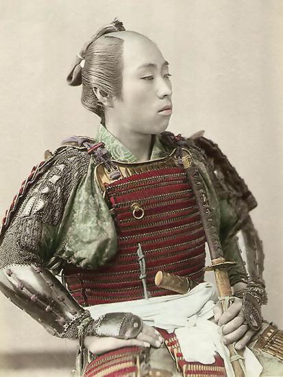 Portrait Of A Samurai Of Old Japan Armed With Full Body Armour 1890 Hand Coloured Albumen Photo Photographic Print Art Com