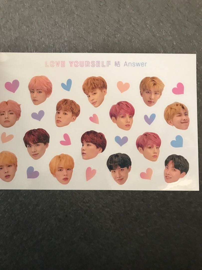 BTS Love Yourself Answer 2CD Book Album with Photocards Poster and Stickers. Pre-order benefits Special Photo Card may be sold out after few daysIf there is no. Decorate laptops Hydro Flasks cars and more with removable kiss-cut vinyl decal stickers.
