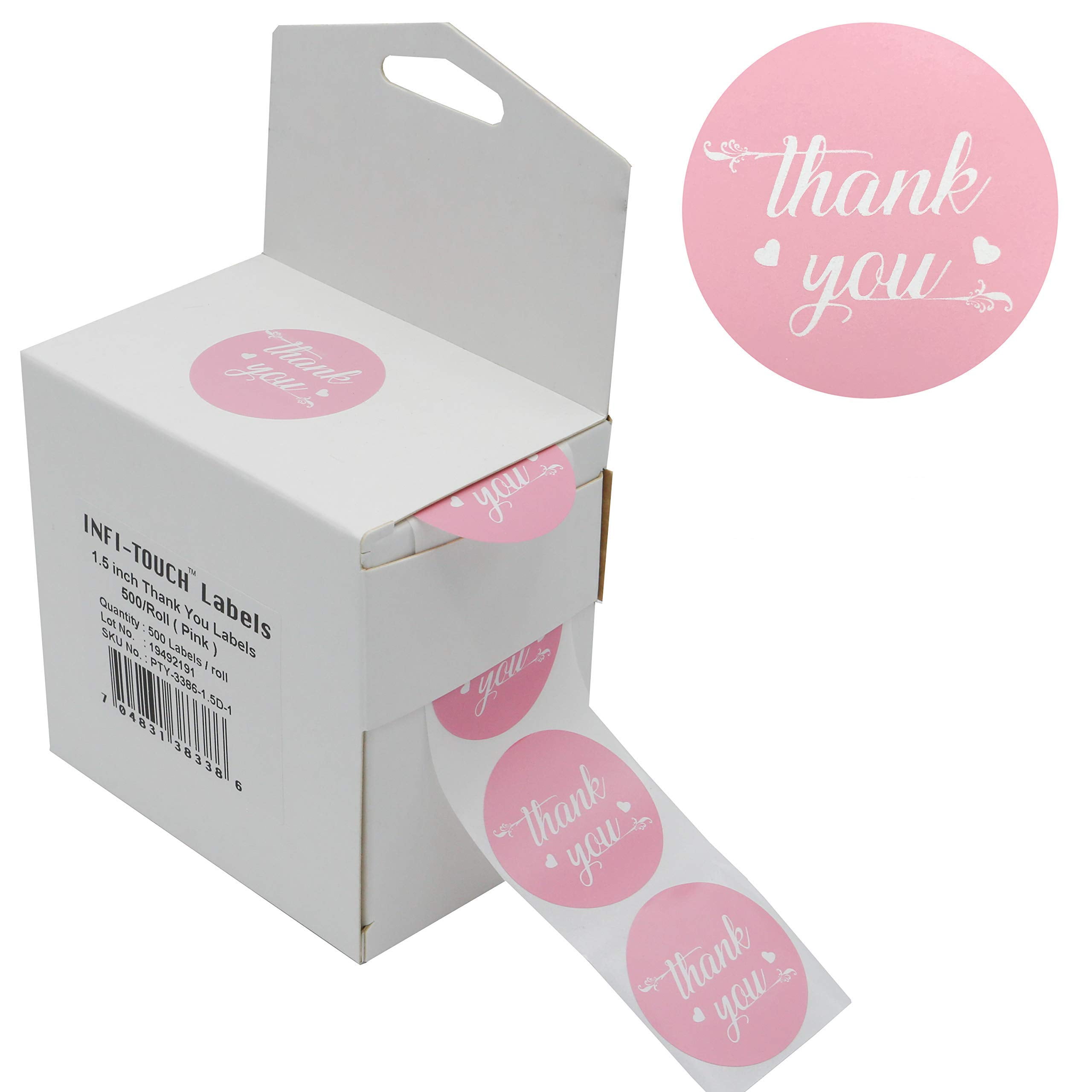 500 Pcs Infi Touch Thank You 1 5 Round Matte Pink Paper Stickers With Dispenser Box Walmart Com Walmart Com